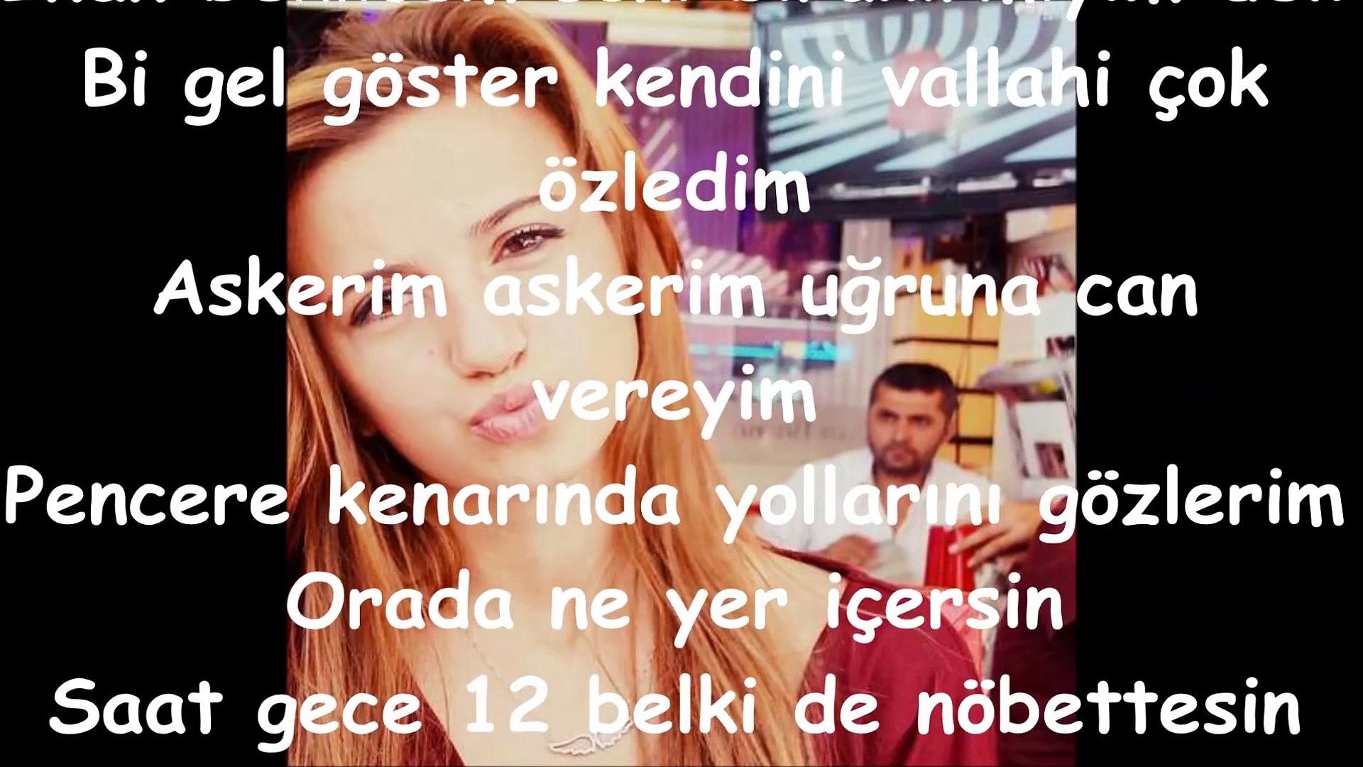 Askerim askerim uğruna can vereyim pencere kenarında yollarını gözlerim indir. Seviyorum lan seni kalbimin sahibi sen yeter ki benim ol uğruna kul köleyim inan beklicem seni bırakırmıyım deli bi gel göster kendini vallahi çok özledim askerim askerim uğruna can vereyim pencere kenarında yollarını gözlerim orada ne yer içersin saat gece 12 belki de nöbettesin ben burda. Askerim askerim uğruna can vereyim. Ukte askerim şarkı sözü. Aylıycam boynuna sarılmaya doyamam.