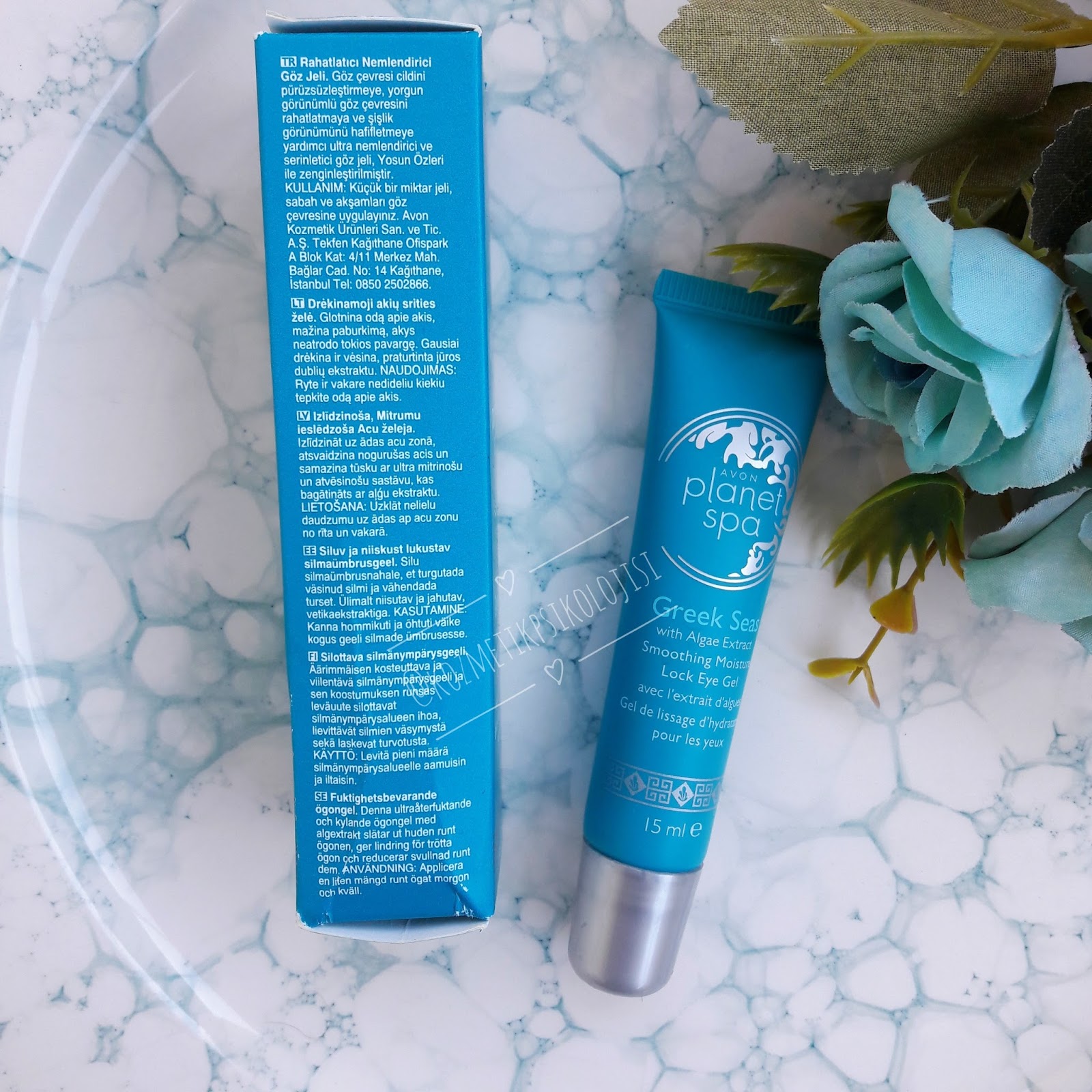 Turkuaz renk bir ambalaj içerisinde 15 ml lik bir ürün. Avon planet spa göz çevresi için pürüzsüzleştirici jel kullanan var mı. Cildi tazeleyen ve enerji veren deniz yosunları içeren formül 15ml. 14 mayıs 2009.