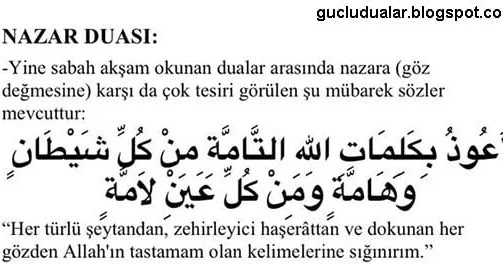 Işte arapça ve türkçe nazar duaları. 2 min şerri mâ halak.