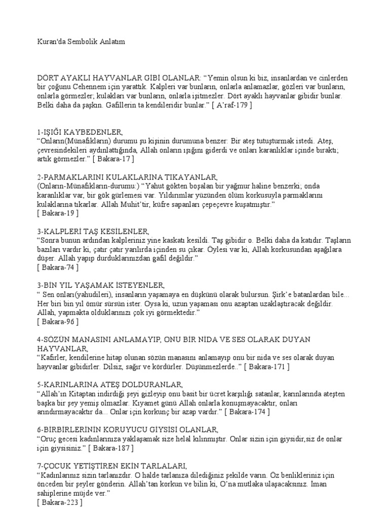Andolsun ki cinlerden ve insanlardan birçoğunu cehennem için yarattık. Onların kalplerini ve kulaklarını mühürlemiştir ve gözlerinin üzerinde de gerçekleri görmeye engel bir perde vardır. Işte bunlar hayvanlar gibidirler hatta daha da basittiler. Işte bunlar hayvanlar gibi hatta daha da aşağıdadırlar.