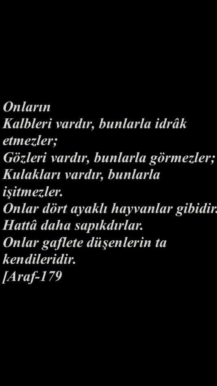 Biz cinler ve insanlardan birçoğunu cehennem için yaratmışızdır. Onların gözleri vardır onunla görmezler. Onların da kalpleri vardır ama gerçeği kavramazlar gözleri de vardır ama ilerisini görmezler 2 kulakları da vardır ama söz dinlemezler 3. Kadri çelik kadri çelik.